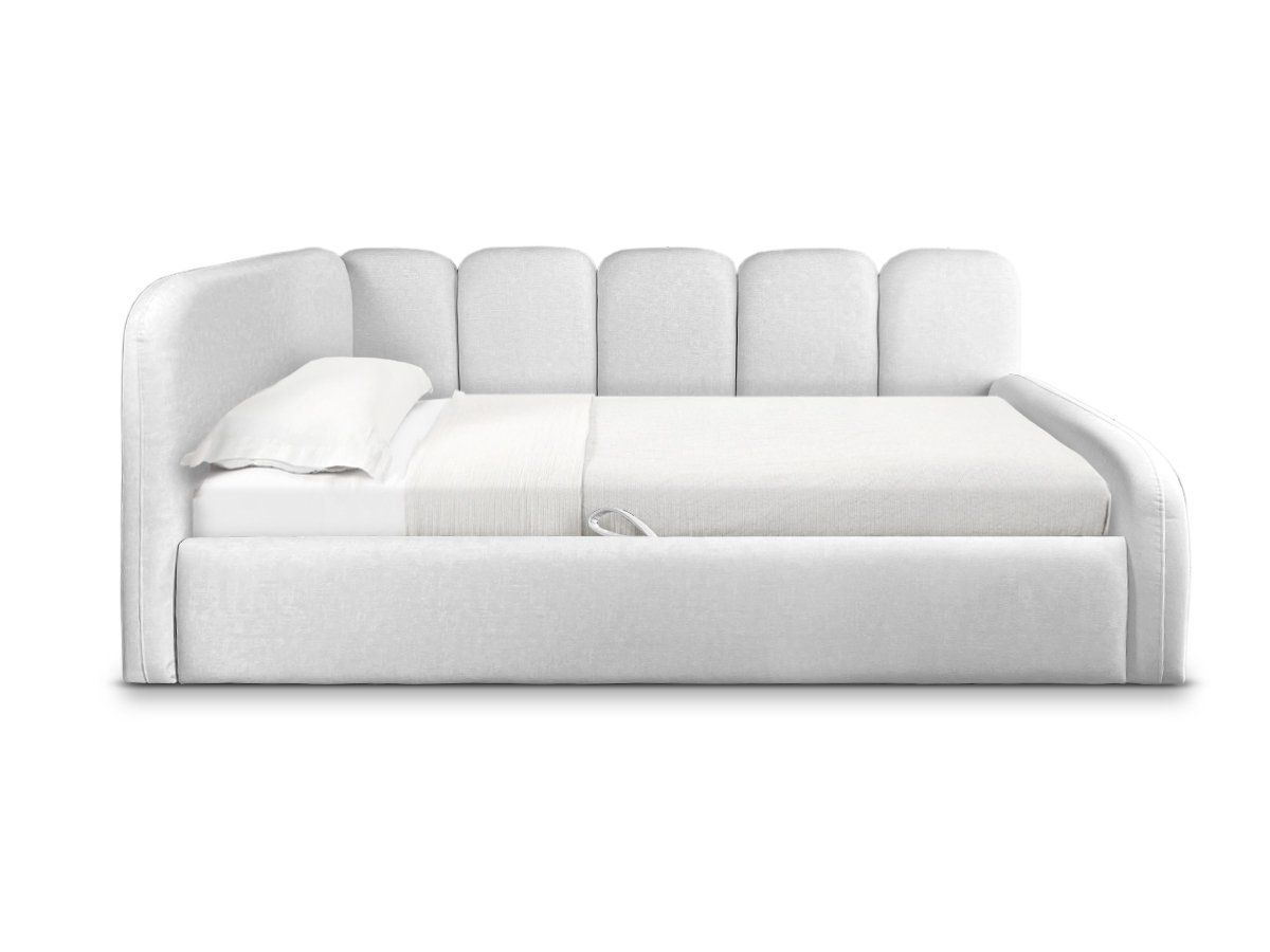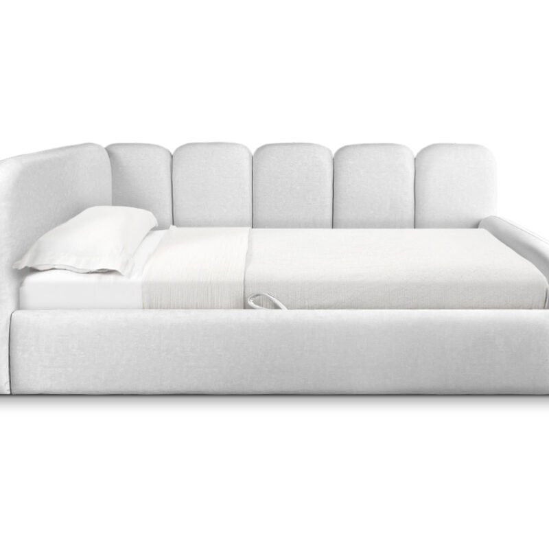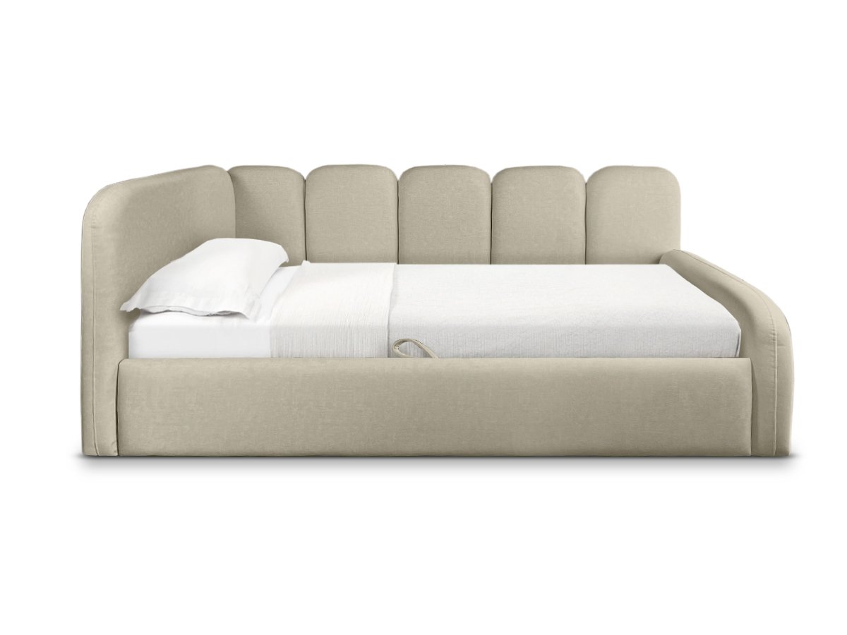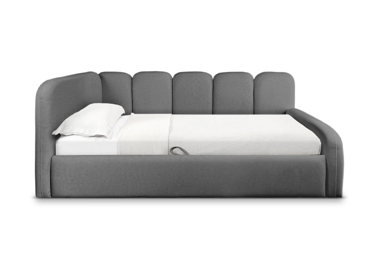 Das Einzelbett TINY eignet sich ideal für moderne Interieurs und schafft eine gemütliche Atmosphäre. Die weich gepolsterten Seitenteile und ein praktischer Bettkasten sorgen für maximalen Komfort und zusätzlichen Stauraum.