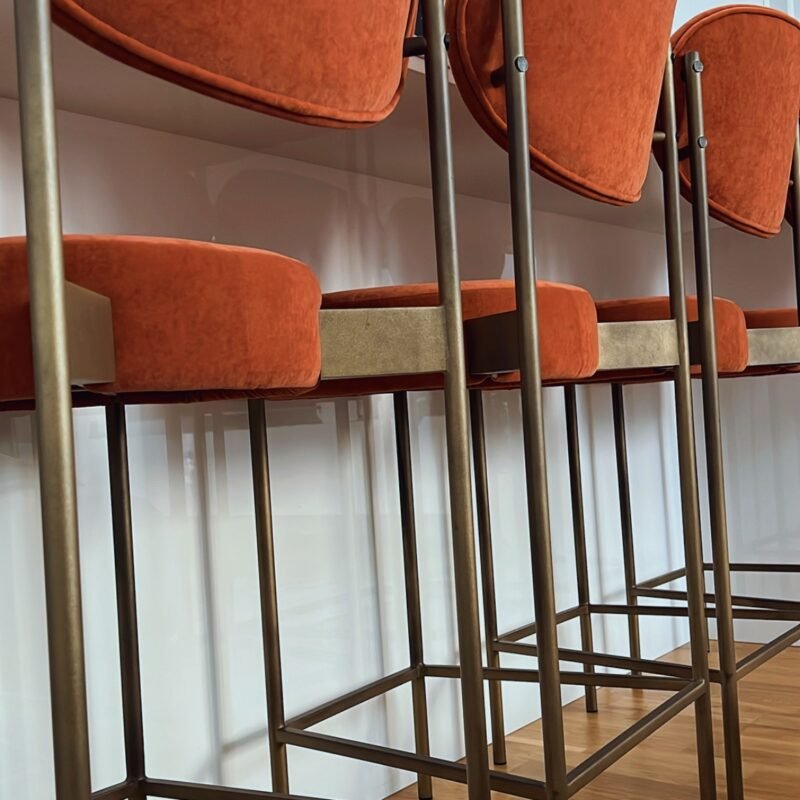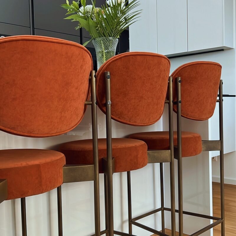 Ich hab mir vor 2 Jahren 4 Barhocker für meine Küche geholt – in mega schönem Terrakotta, Stoff Anfora 9 mit goldenen Beinen. Bin richtig happy damit! Die Qualität von Stoff und Stühlen ist top 👍 und die Dinger stehen bombenfest. Kann ich nur empfehlen!