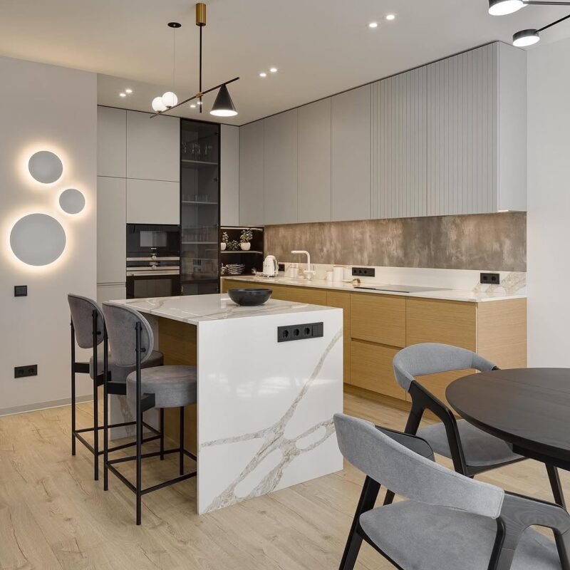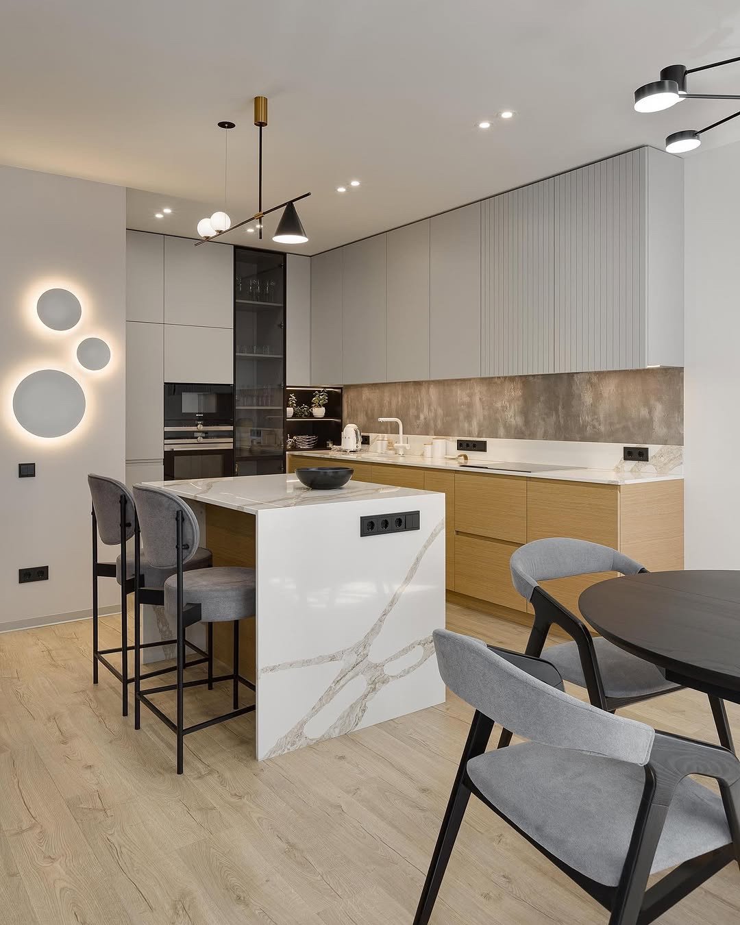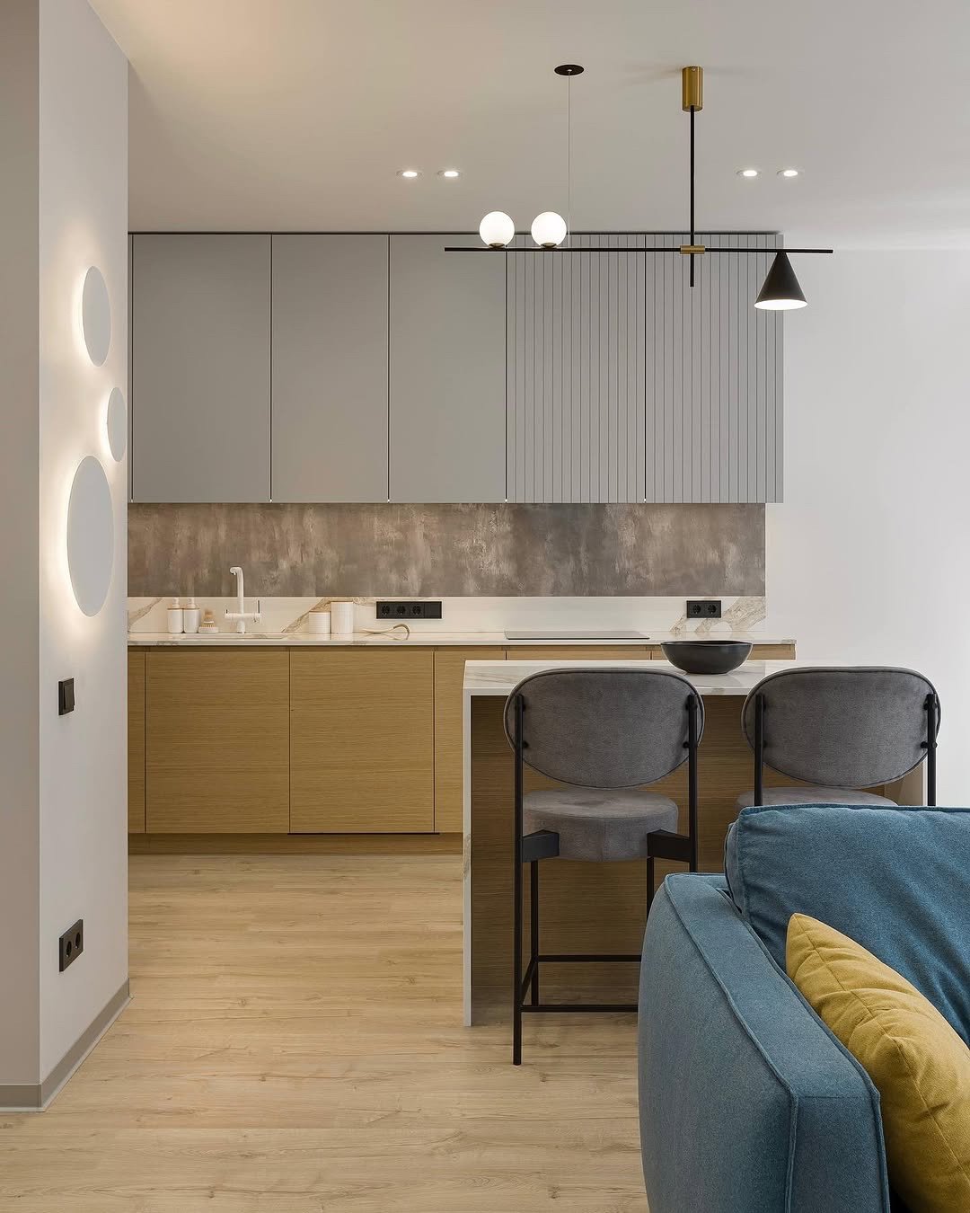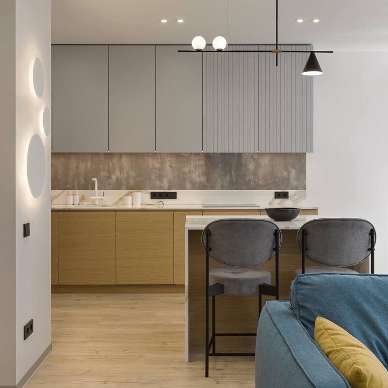Stoff mit charakteristischen Elementen auf der Oberfläche: Knoten und Schlaufen in verschiedenen Formen. Die Schönheit dieses Stoffes liegt in seiner Unebenheit – die konvexe Oberfläche ist weich, warm und fühlt sich angenehm an. Martindale-Test: 90.000 Zyklen